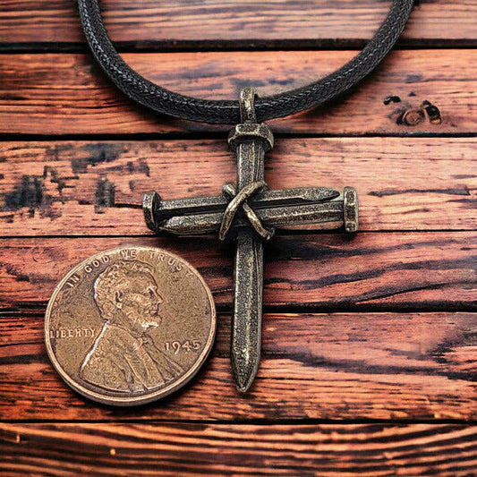 Antique Nail Cross Necklace In brass