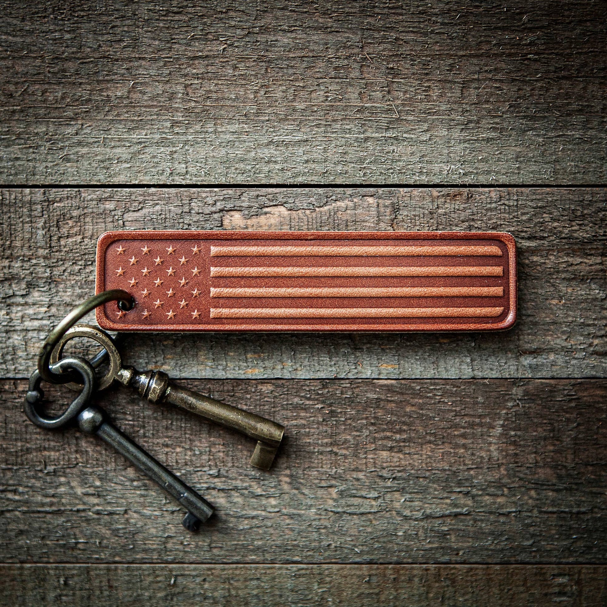 Unique and personalized gift item to offer your customers! Our leather keychains are cut and pressed by hand from some of the thickest and finest harness leather available, and patina beautifully as they age. We have many more styles planned for the near future, so check back soon and often! Looking for your state or location? Need custom branding or something special for gift baskets? Reach out today!
