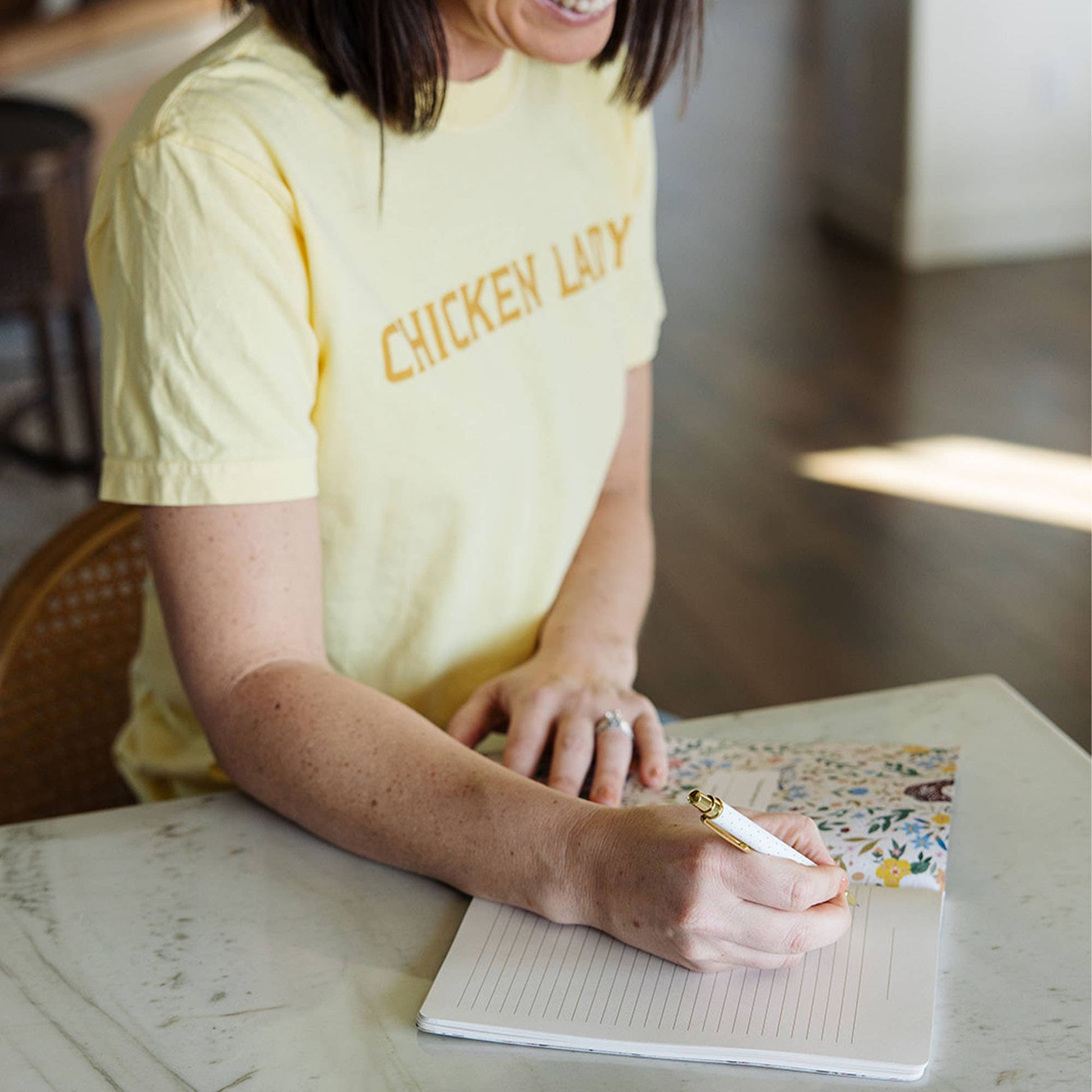 The elegant stitched binding adds a rustic touch, making it a beautiful addition to any desk or kitchen. This notebook makes a thoughtful gift for chicken enthusiasts, aspiring writers, or anyone who appreciates a bit of rural charm in their everyday life. Ideal for birthdays, housewarmings, or special occasions, the Chickens & Flowers Stitched Notebook is both functional and stylish—an inviting canvas for your creativity! Interior l 30 sheets front and back, 60 lined pages total Size l 8.5×6"