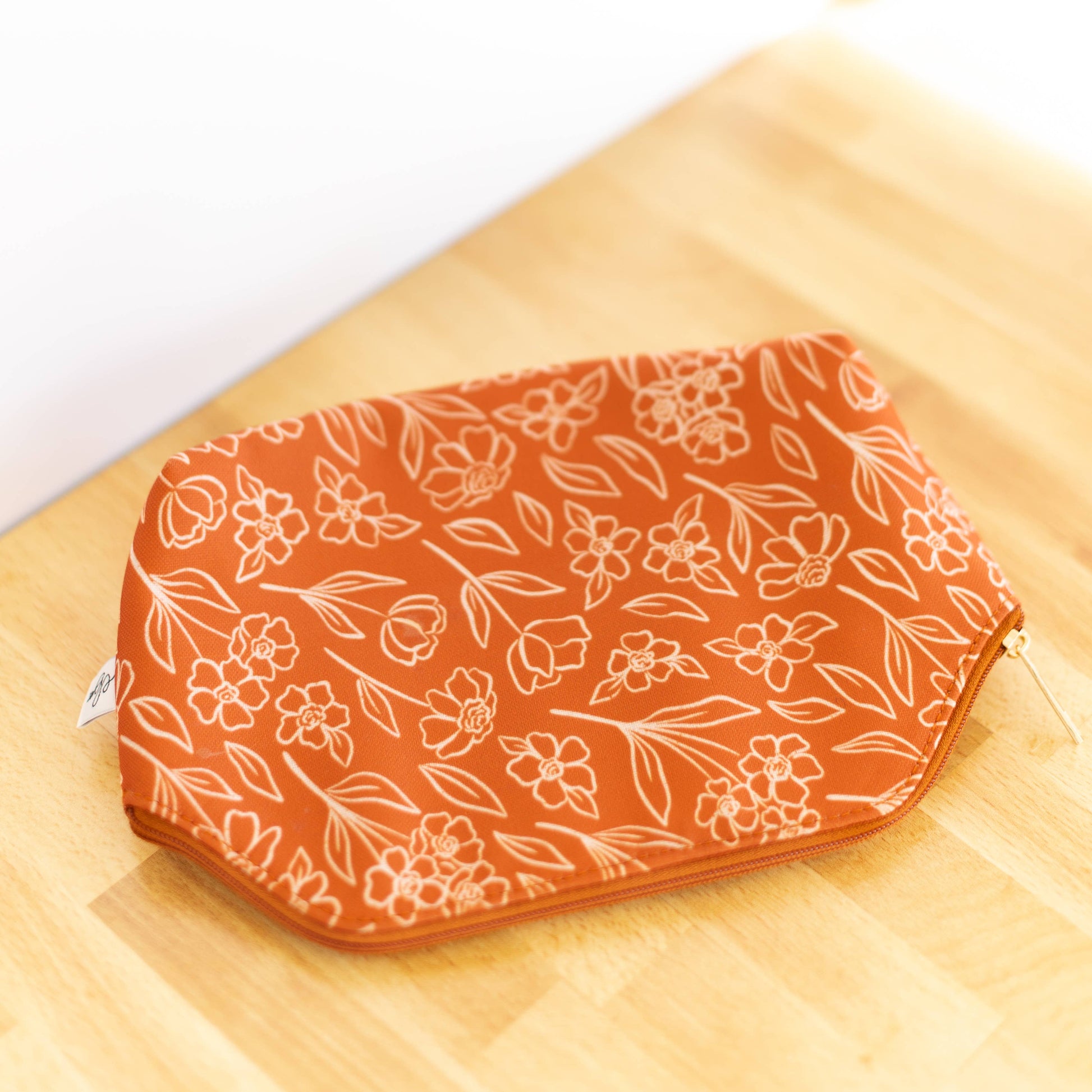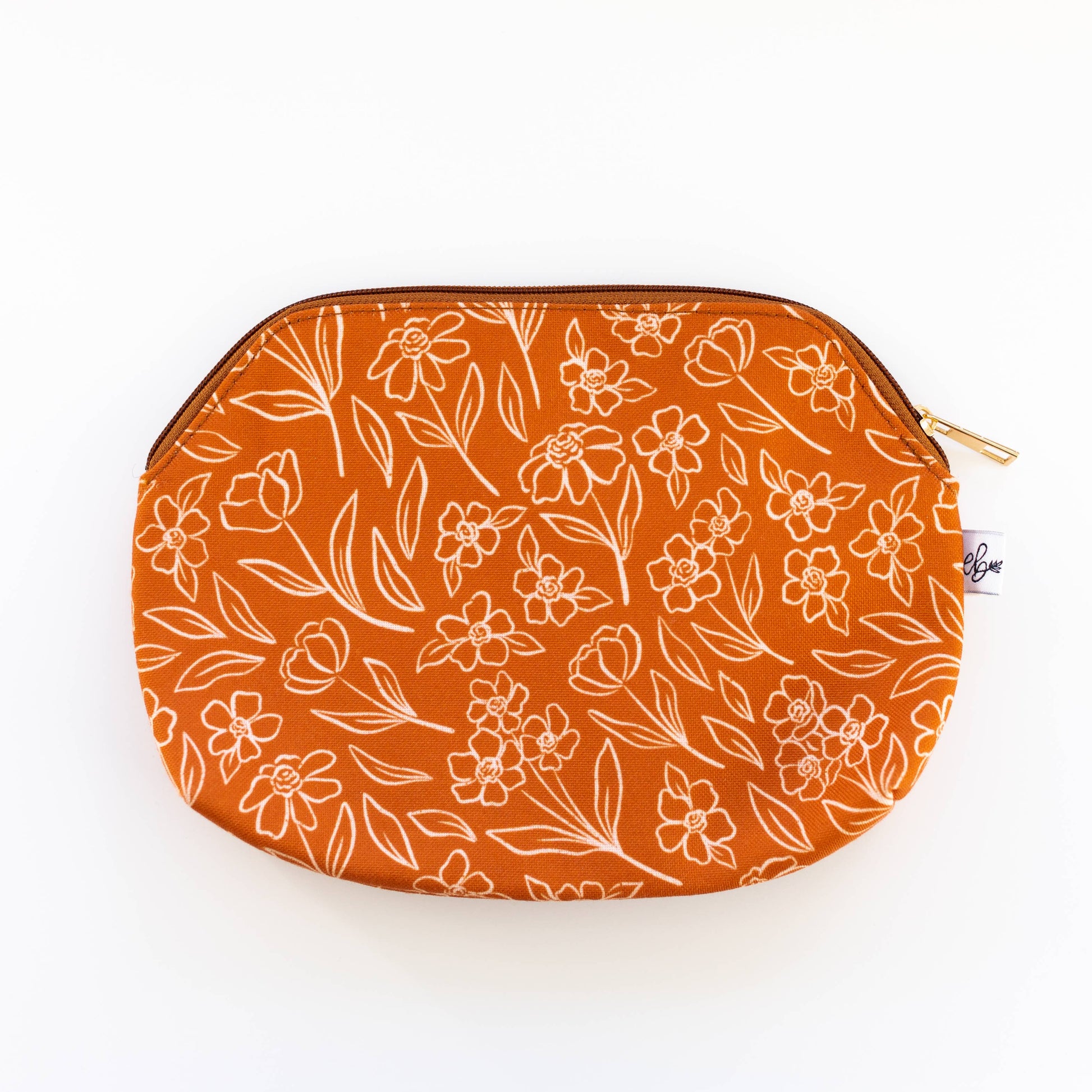 Our versatile large zipper pouch is designed to keep your art supplies or make-up essentials organized and accessible. Designed to be compact and portable, this pouch effortlessly fits into your bag, ensuring creativity is always within reach. Features: - Main zipper - Nylon lining - Polyester Canvas - Size: 9.5 x 6.75" - Gold colored metal zipper pull - Imported For best care, handwash in cold water and lay flat to dry.