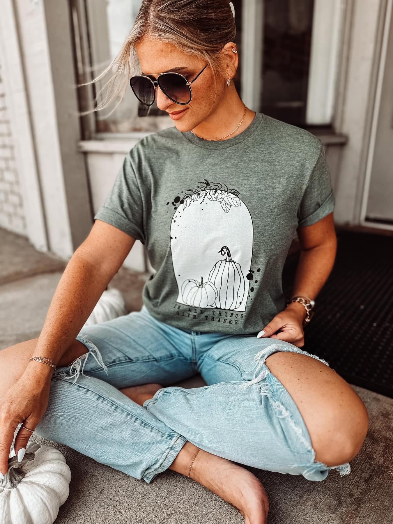 It's time to get thankful with this in all things give thanks tee! Get in the spirit of gratitude this season (or any season for that matter!) with this comfy graphic tee. It's perfect for post-turkey day naps.