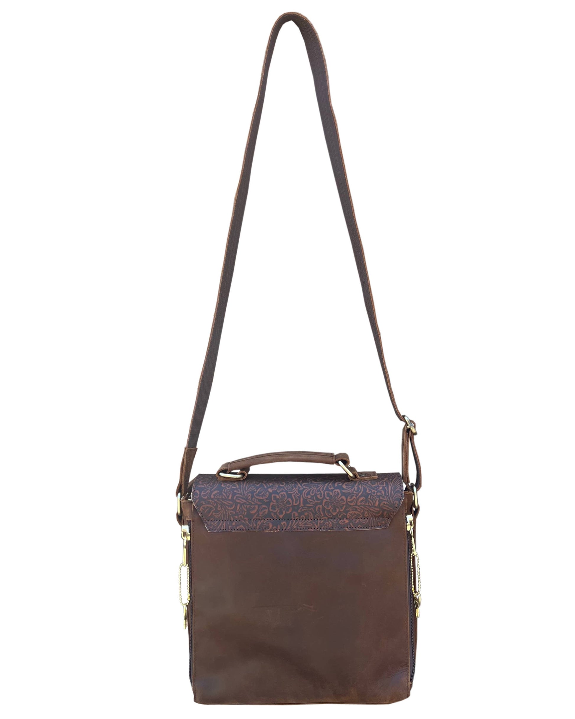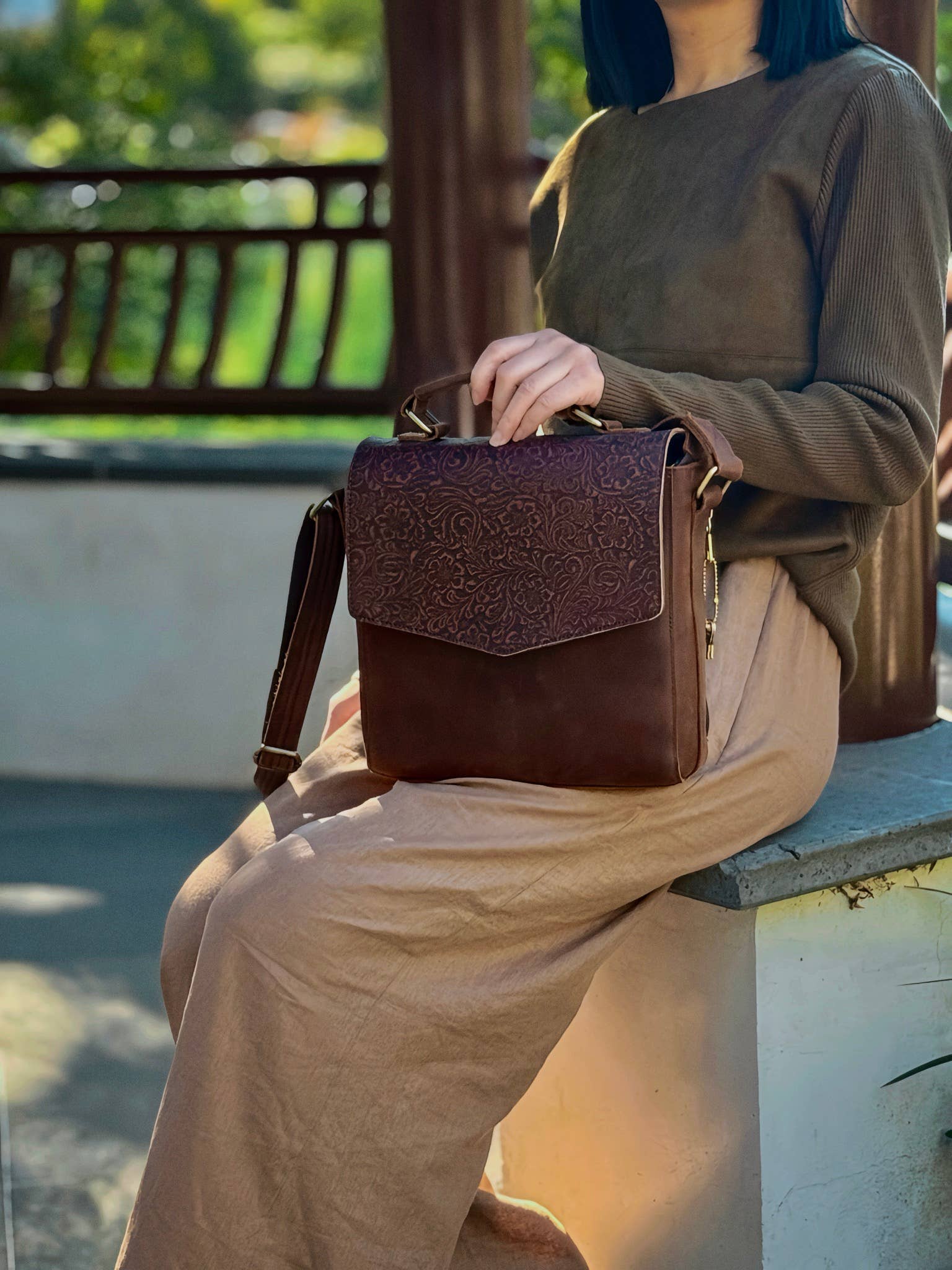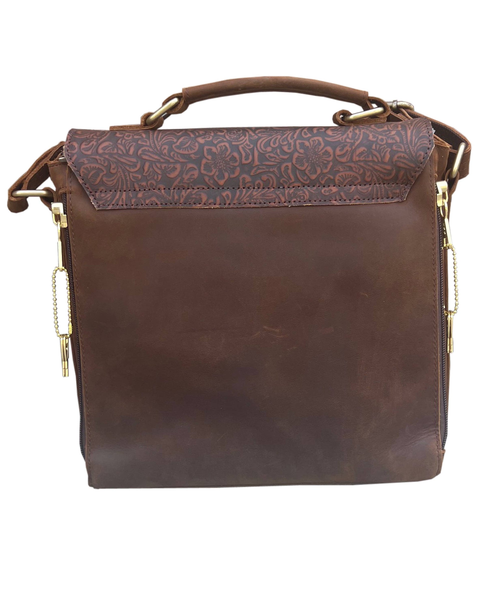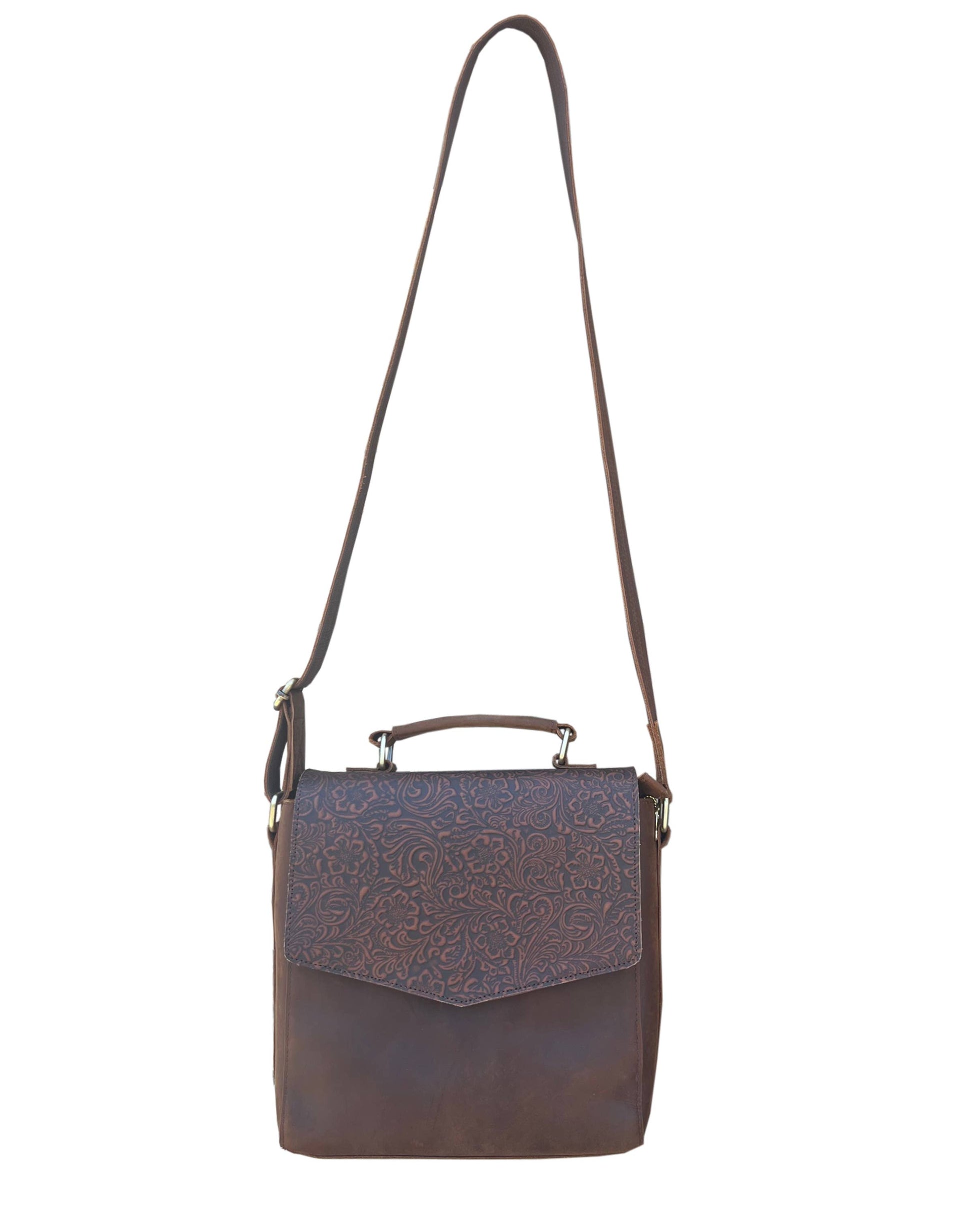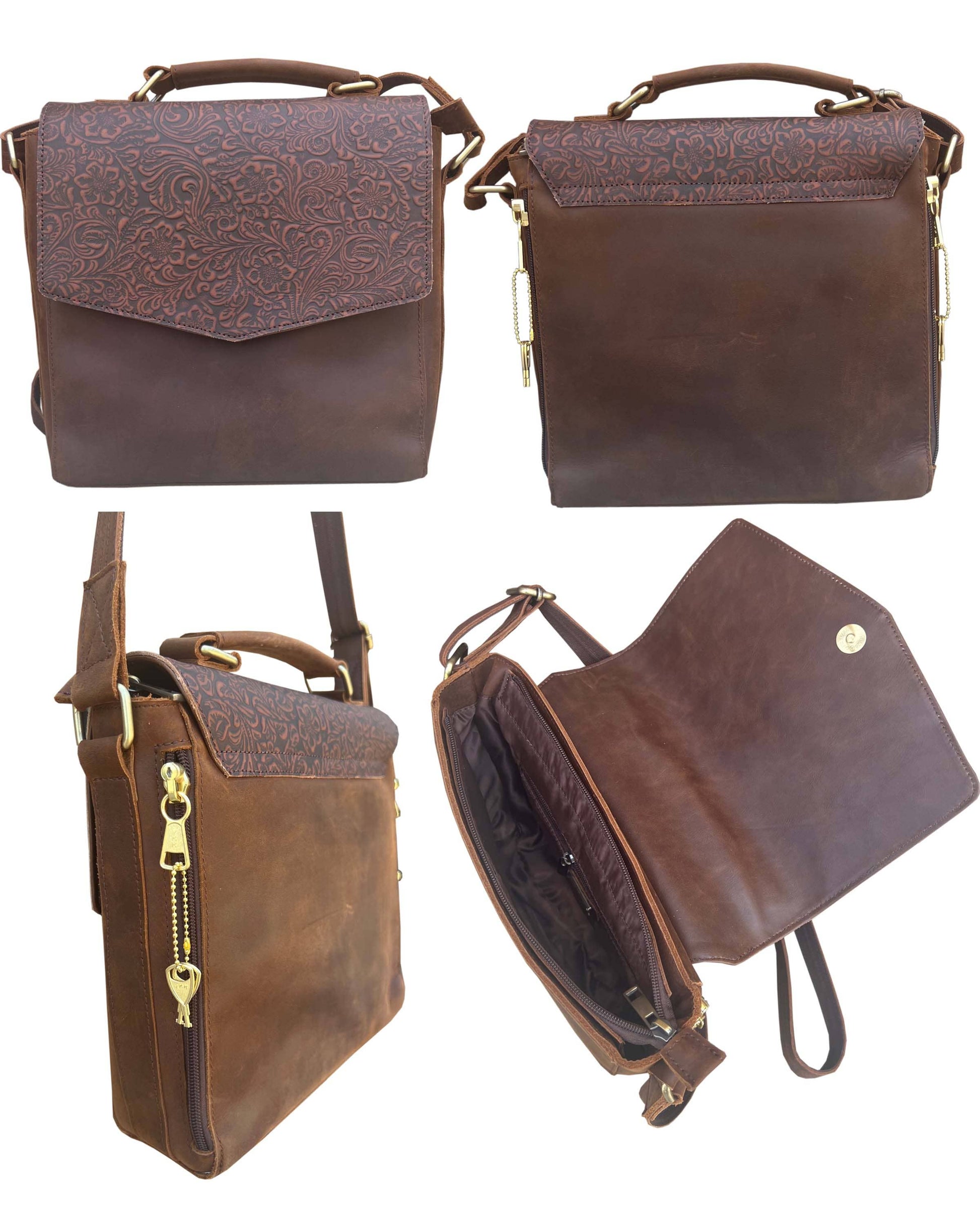 Classic top-handled bag in brown vintage cowhide leather with old gold hardware. It is perfect as a purse or handbag; this accessory is a must-have for any fashionista.